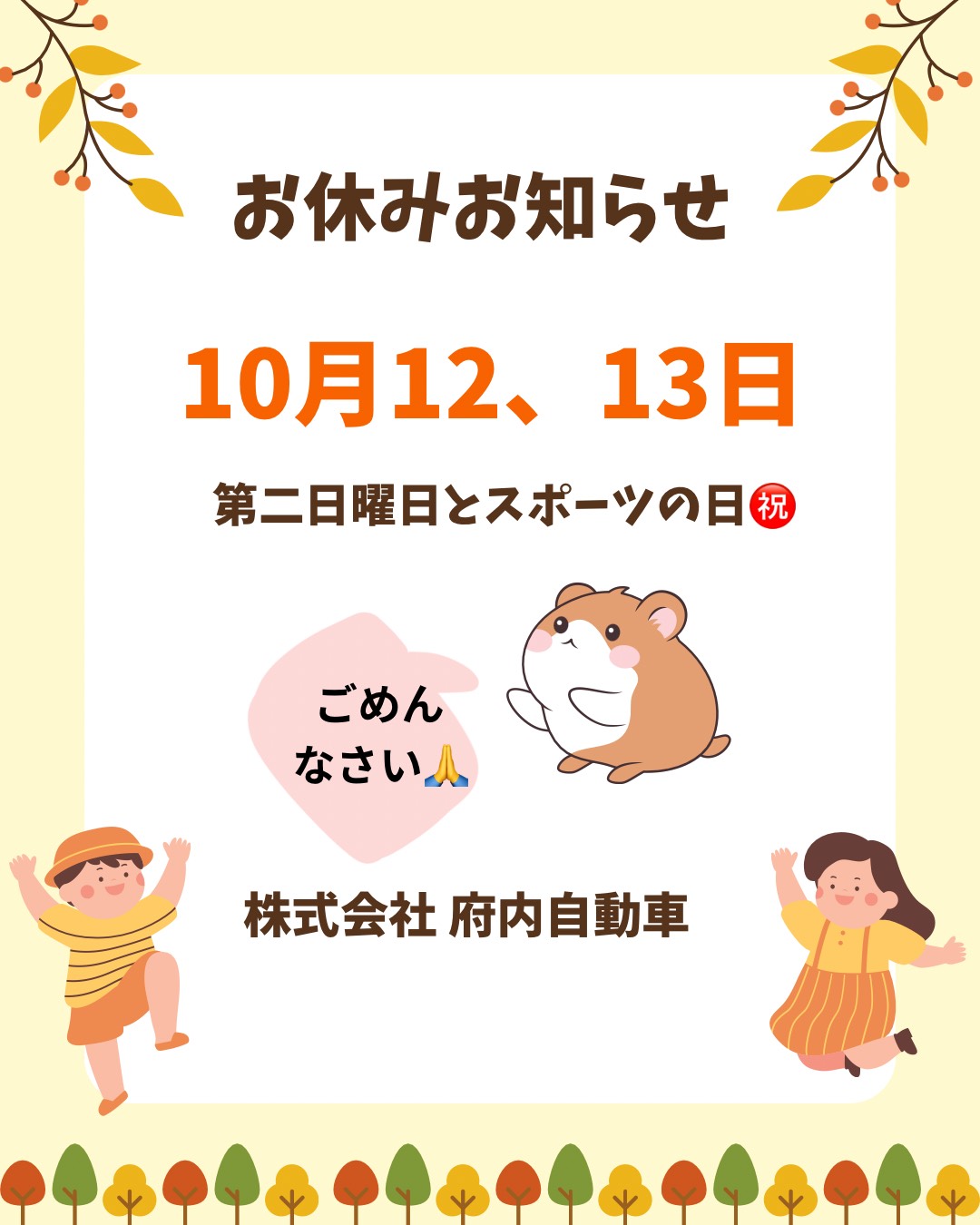 第二日曜の12日とスポーツの日🎌の13日の二日のみです。