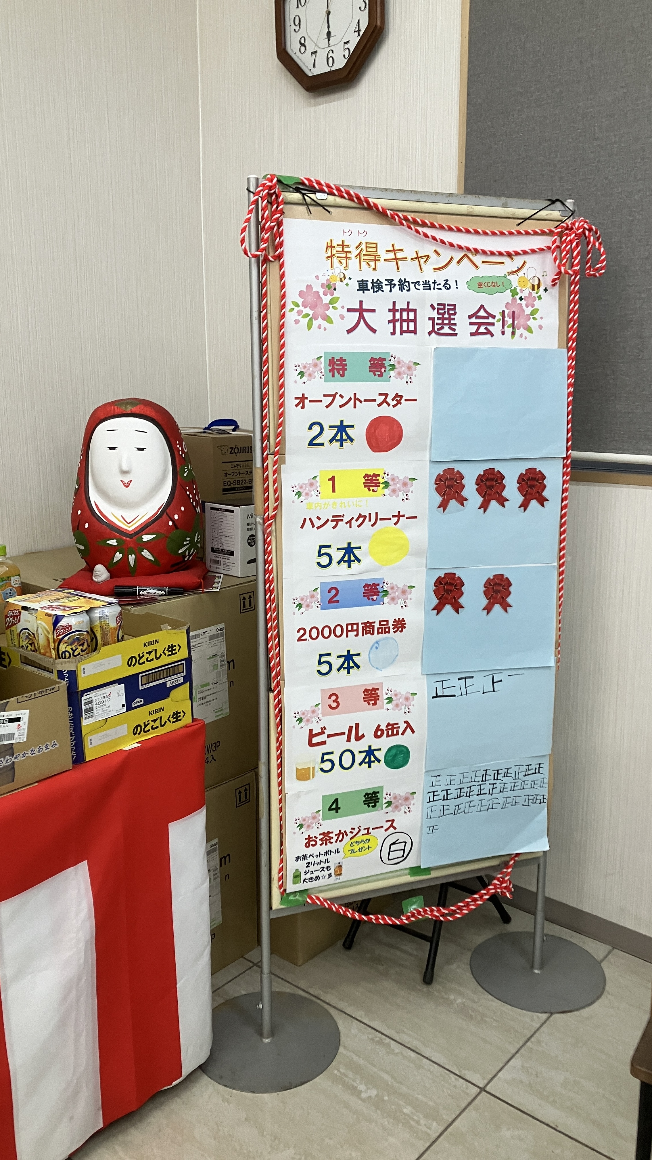 ご来店お見積りでティッシュ3箱組、割引3000円がついて、抽選会もできるお得なキャンペーンです!